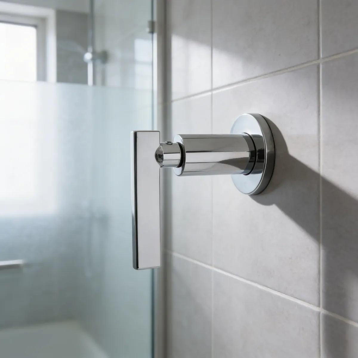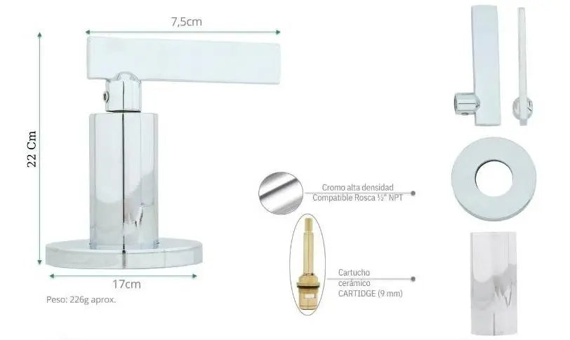 Optimiza el consumo de agua con esta manija con vástago, diseñada con un sistema de cierre rápido que evita desperdicios. Su material metálico de alta calidad y su acabado cromado brillante le otorgan un toque moderno y elegante a tu baño.