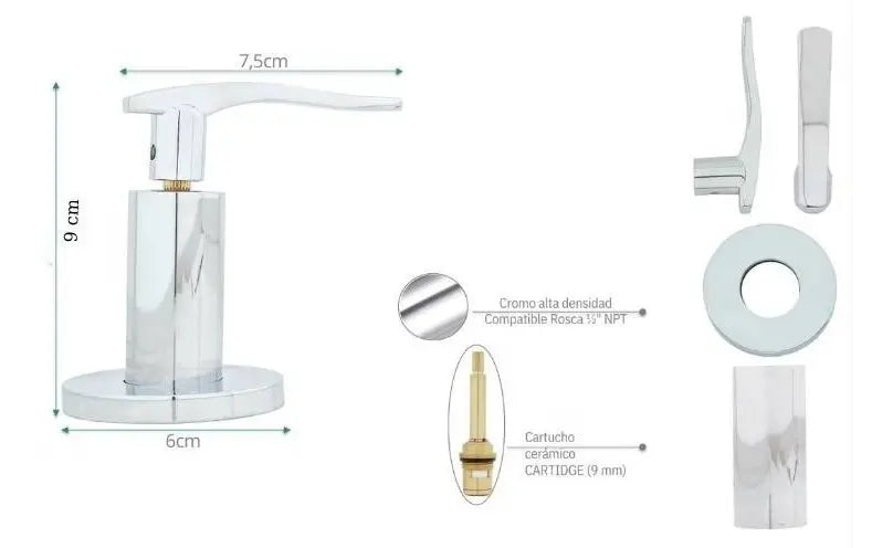Disfruta de un baño placentero con esta grifería diseñada para optimizar el consumo de agua sin perder comodidad. Su sistema de cierre rápido evita el desperdicio, mientras que su acabado cromado de alto brillo le da un toque elegante a tu espacio.