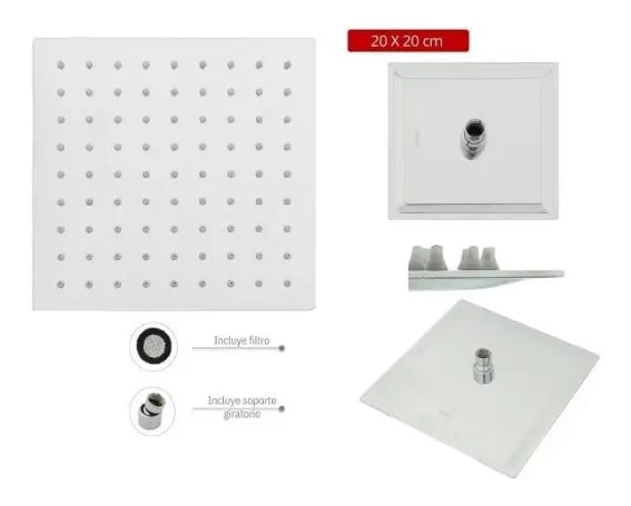 Transforma tu baño en un espacio de relajación y confort con esta regadera tipo lluvia de 8 pulgadas (20 cm de diámetro). Su diseño moderno y acabado en cromo aportan un toque de elegancia y sofisticación, mientras que su cabezal orientable 360° permite ajustar la dirección del chorro a tu gusto.